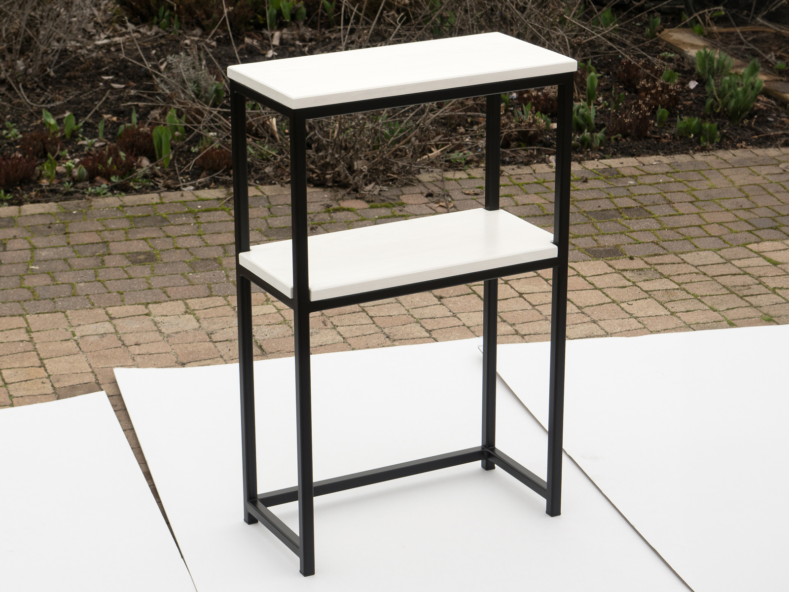 Konsola, toaletka dekoracyjna model SK4. Solidna stalowa konstrukcja z drewnianym blatem i półeczką.